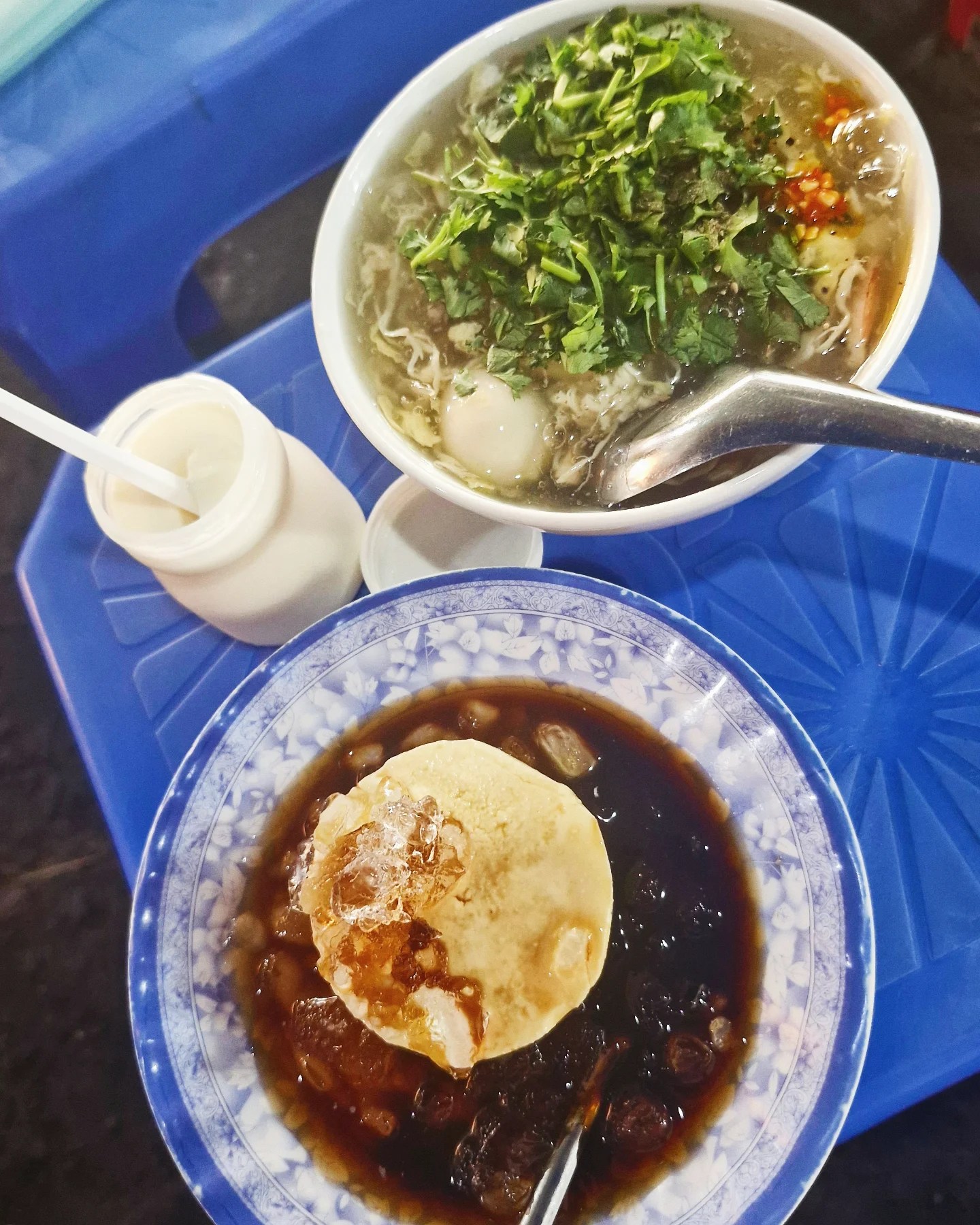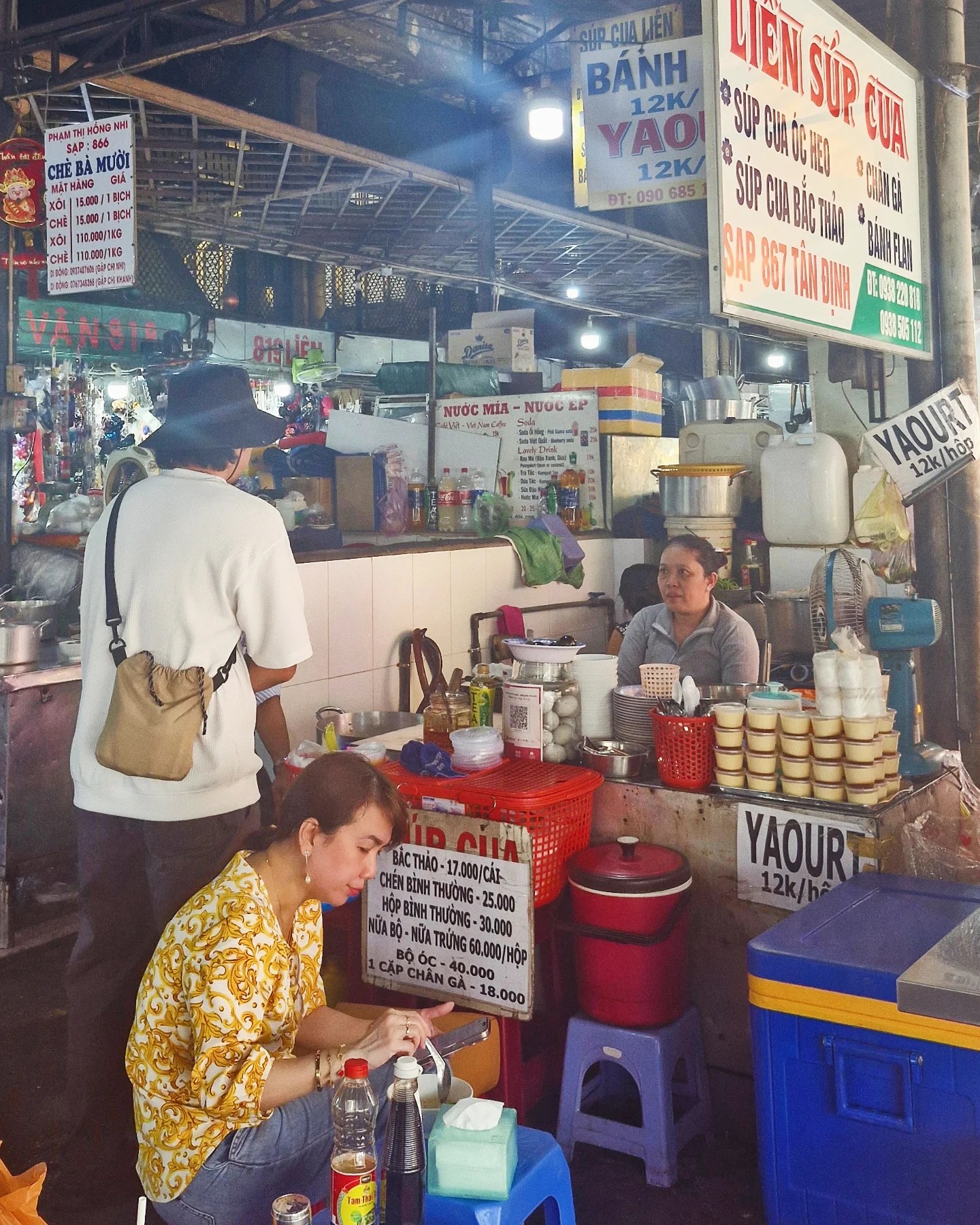 We decided to walk to the nearby Tân Định Market and grab some snacks. We both wanted to try more local food, so we had Súp Cua (crab soup), Bánh Flan (Vietnamese crème caramel), and their yoghurt. Asis also bought a sugarcane drink, which I just couldn’t get into. But everything else was so good, and so cheap!