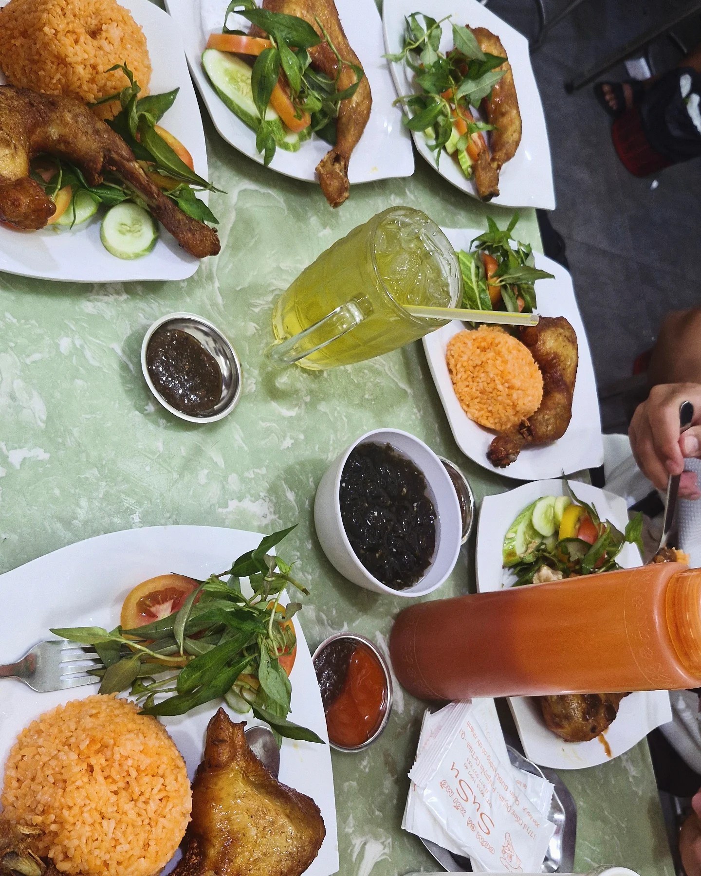 Uyen was such an amazing artist! We absolutely loved our tattoos. The lines were so fine and delicate, exactly how we wanted them. After almost three hours, we were finally done (and starving), so we headed back to Susu Waterfall Chicken. We each ordered two chicken leg quarters. Still as juicy and delicious as the first time. It was the perfect way to end our trip.