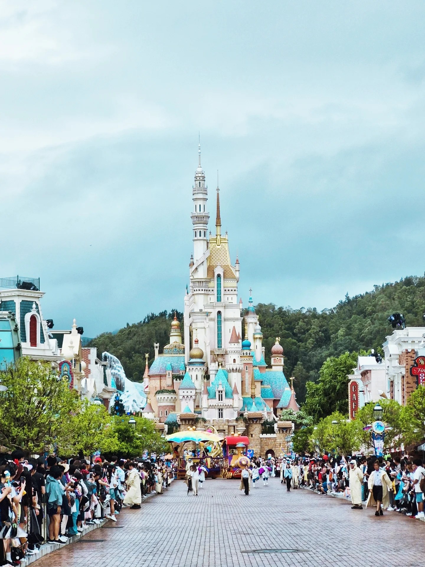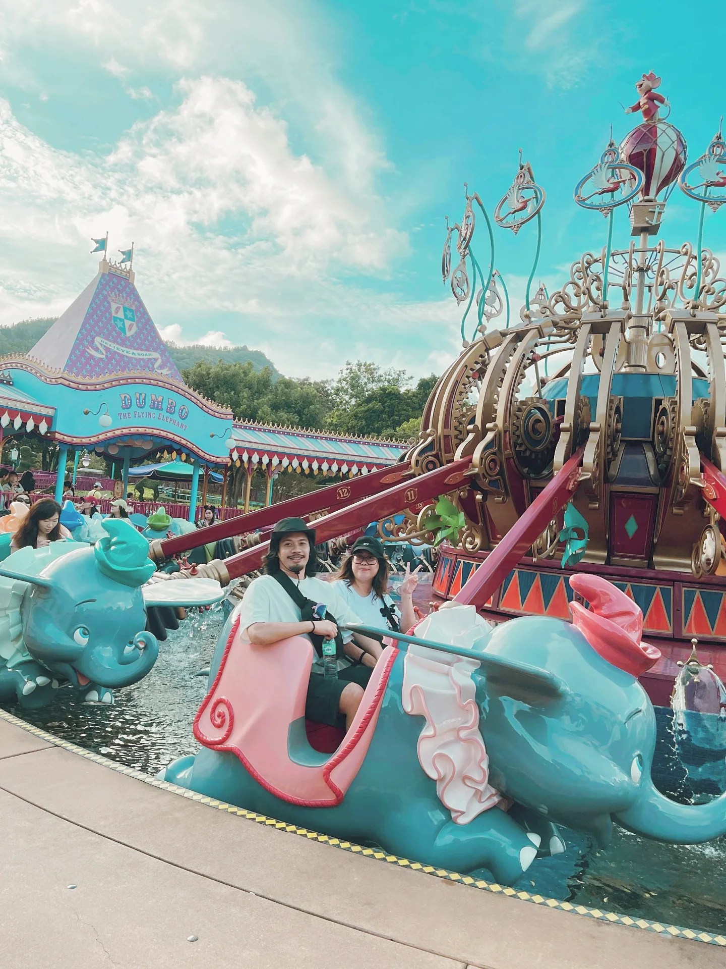 After dropping our bags, we grabbed brunch at Fairwood beside Chungking. We then booked an Uber to get to Disneyland quickly. We arrived a little before 2 PM, which was still okay because we still had plenty of time to get on rides. Most queues were less than five minutes, and many had no lines at all. Some rides were closed, but that was fine. We also got our free mini party hats, and a first-time pin.